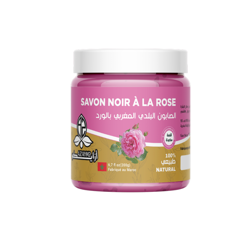 savon noir de rose est un produit haut de gamme.Fabriqué à partir d’ingrédients 100% naturels.Idéal pour nourrir et hydrater intensément.Convient à tous les types de peaux.Protège contre le dessèchement et les agressions extérieures.Facile à appliquer grâce à sa texture légère.À utiliser quotidiennement pour de meilleurs résultats.Conditionné dans un flacon pratique et refermable.Mode d’utilisation : Appliquer une quantité appropriée sur la peau ou les cheveux, puis masser délicatement jusqu’à absorption complète.Précaution : Pour usage externe uniquement. Éviter le contact avec les yeux. Conserver hors de portée des enfants.Contenance : 200g.Origine : Maroc.
