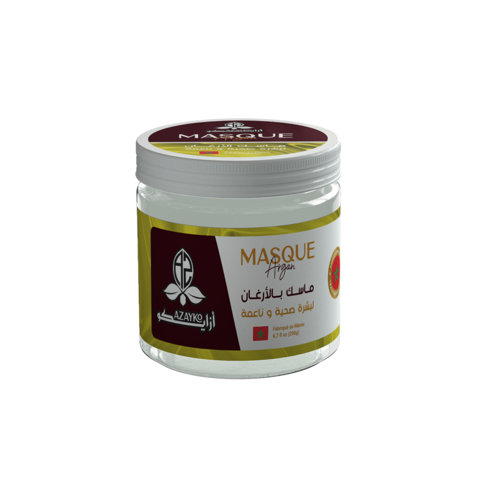 Masque Argan est un produit haut de gamme.Fabriqué à partir d’ingrédients 100% naturels.Idéal pour nourrir et hydrater intensément.Convient à tous les types de peaux .Protège contre le dessèchement et les agressions extérieures.Facile à appliquer grâce à sa texture légère.À utiliser quotidiennement pour de meilleurs résultats.Conditionné dans un flacon pratique et refermable.Mode d’utilisation : Appliquer une quantité appropriée sur la peau , puis masser délicatement jusqu’à absorption complète.Précaution : Pour usage externe uniquement. Éviter le contact avec les yeux. Conserver hors de portée des enfants.Contenance : 200 g.Origine : Maroc.